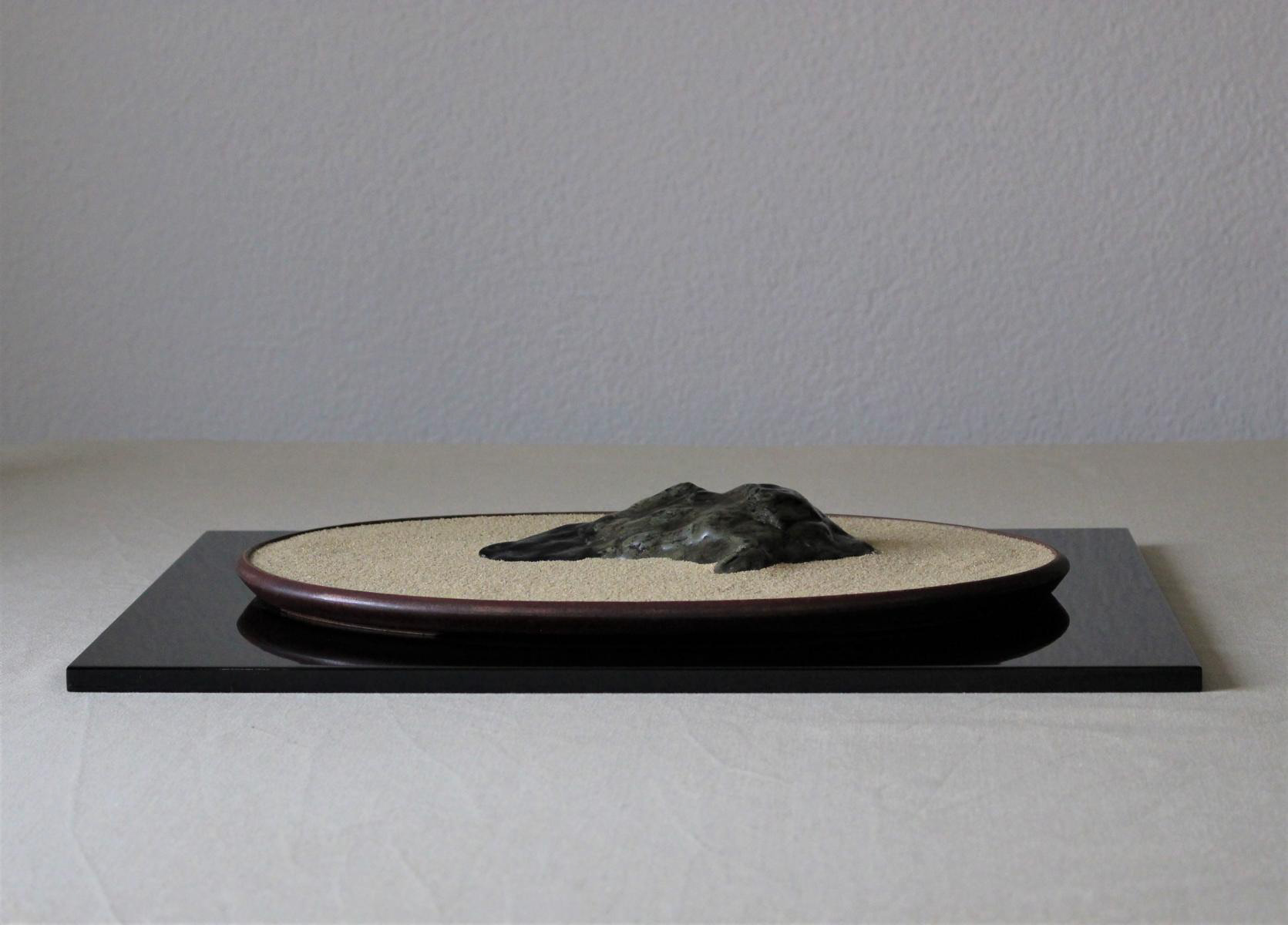 We collect and cultivate Suiseki to finally enjoy their beauty in coherent presentations (kazari). It is amazing to feel how dynamic the art of Suiseki is: with seemingly immutable stones, there are unlimited possibilities to give the stone a voice. It is crucial that all elements of the Kazari are in harmony to be able to tell a story together with the stone.